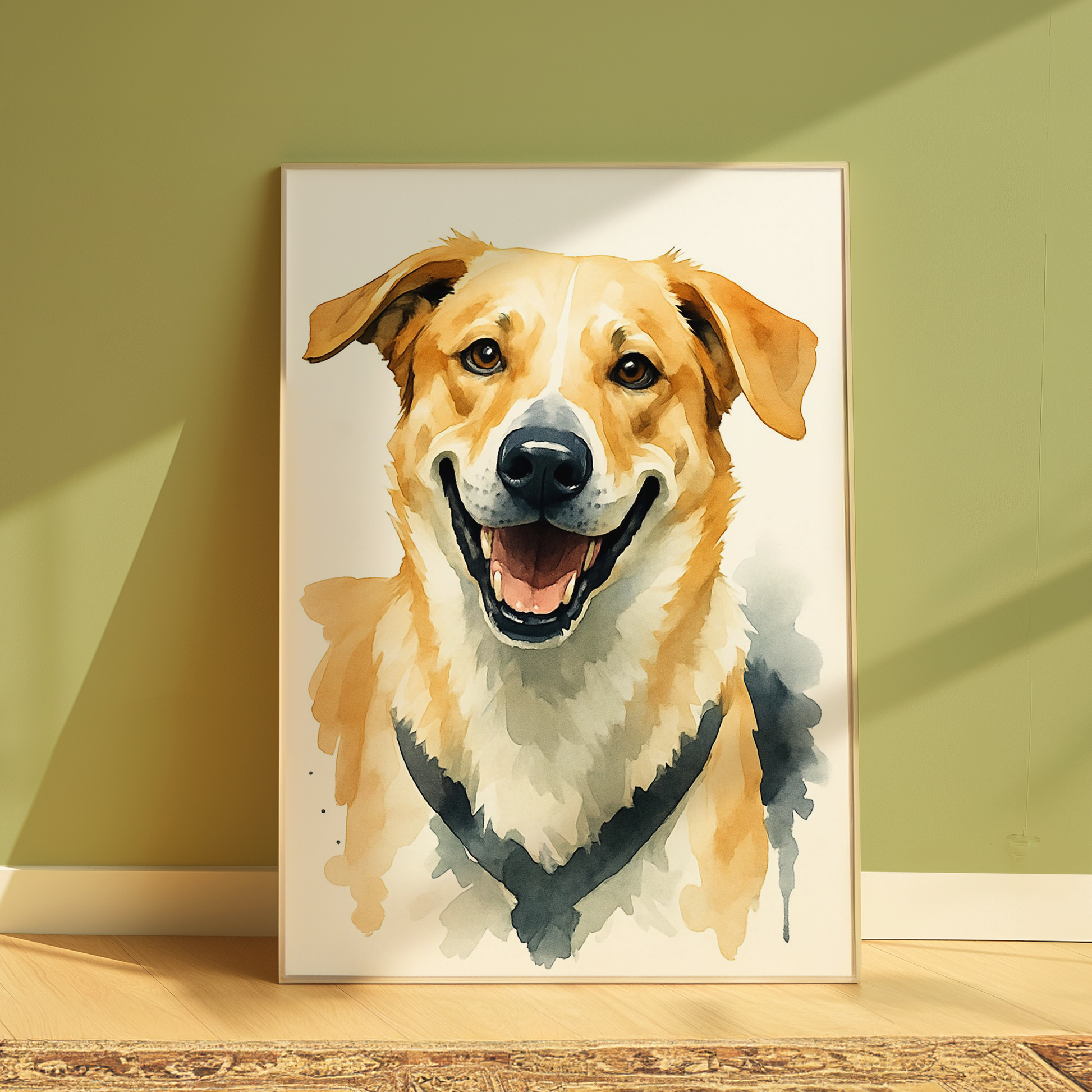 Ik was verbaasd hoe goed de persoonlijkheid van mijn hond terugkomt in de poster. Het voelt alsof ik een echt kunstwerk in huis heb gehaald, maar dan met mijn eigen viervoeter. Iedereen die langskomt vraagt waar ik dit heb laten maken! –Sanne
